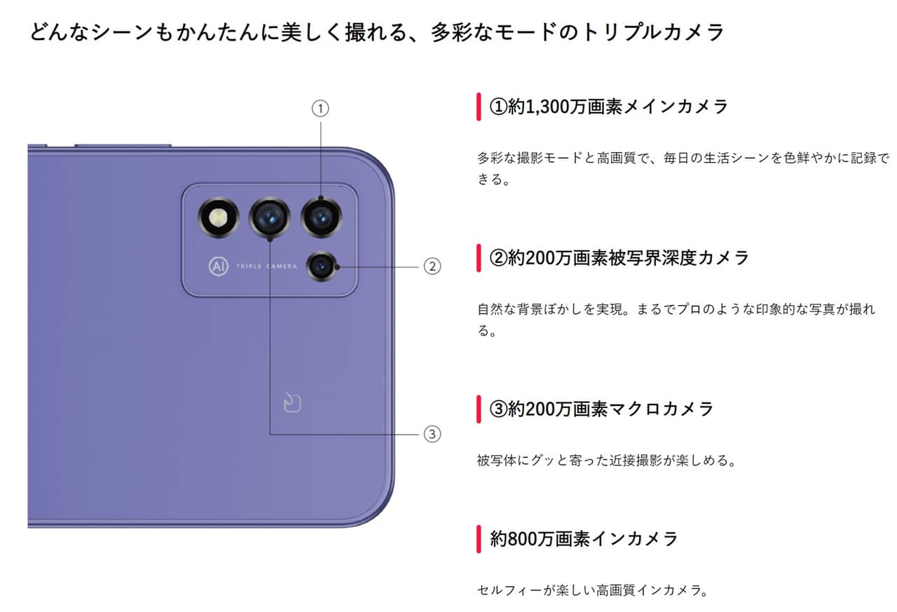 ▼Libero 5G IIIのカラーはパープル、ホワイト、ブラックの3色構成!パープルは結構珍しい色合いですね。カメラユニットもボディカラーと同色になっているのも特徴的です!↓