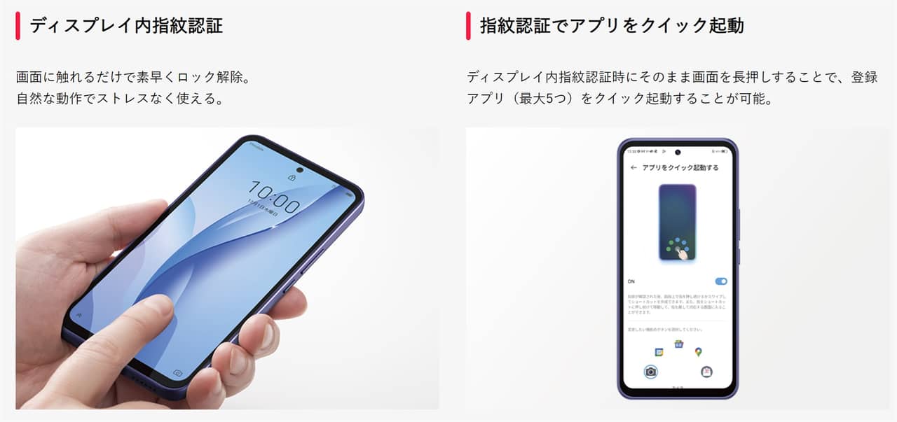 またLibero 5G IIIは指紋センサーが画面内に変更されています!これによりホルダーにかけたままでも机に置いたままでも認証できるようになっているのはポイント高いっすね。